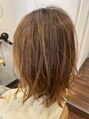 肩にあたる長さは、あえて外ハネに!!ハネ感がカジュアルな雰囲気でキュートな仕上がりに!!