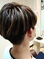 暗めのベースにアクセント強めのハイライト!前髪下げても上げてもGOODなスタイルです☆