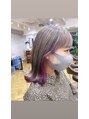 全体2回ブリーチ使用。2回ブリーチするとベースカラーはホワイティーベージュに退色しますので、色抜けも可愛いです^_^ラベンダーのインナーカラーは退色すると薄い紫になるくらいなので、色持ちもいいです!