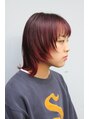 ブリーチなし レッドカラー ウルフマッシュ デザインカット