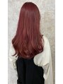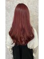 ダブルカラーでビビット系カラー。ピンクパープルロングです。ブリーチ1回後にピンクパープルカラーを塗布。退色具合も楽しめるカラーです。