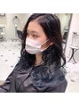 既存のブリーチ部分を活かして毛先カラー♪繋ぎ目はグラデーション気味なのでパキッとわかれないお洒落なネイビーブルー^ ^♪