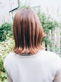 ナチュラルストレートなミディアムスタイルでキレイめ大人女子に☆ バックスタイルは首元をくびれさせて軽さがでてまとまりやすいスタイルになっています。 トリートメントでさらさらヘアーに☆ ツヤ感の出るようなベージュカラーにしました。