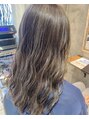立体感が出るハイライトカラーです。全体は暗めのカラーでハイライト部分を明るめのグレージュで染めています。