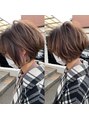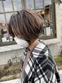 インナーにホワイトパープルでデザインにアクセントをつけました。写真のように耳に掛ける場合とかけない場合で見えない様にもできるので万能です。お客様の環境に合わせてご提案いたします♪