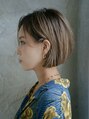 人気のあごラインのミニボブスタイルです! 自然に中に入る様に毛先は軽めにカットしています。カラーは根元は外してあえて地毛を生かし、ハイトーンのナチュラルなベージュで仕上げています。前髪は薄めに作り顔周りにニュアンスをつけました