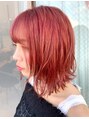 【宮本大輔】切りっぱなしボブ 大人小顔 レッド ブリーチ 透け感/ホットペッパービューティー
