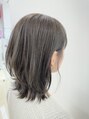 肩でハネさせるミディアムスタイルとカーキアッシュなお色でこなれ感ある大人な印象に♪32mmのコテで毛先を巻くだけなのでスタイリングも簡単です♪