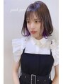 今回は紫カラーとっても可愛いです☆ブリーチしてないところはアマランスというおちついた青紫カラー顔まわりのカットデザインもとても大切ですね!今回は全体的に空気感をだしエアリーなシースルーにしました