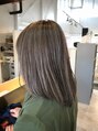 ハイライトカラーです。白髪の固まるエリアに集中的にハイライトが入ってます。白髪があってもなくても明るめのデザインカラーは楽しめます。ワンブリーチ。暗いところは透明感を。明るいところはギラつかせずナチュラルなグレージュに。色持ちも抜群です。