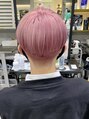 ケアブリーチでハイトーンのベースを作ったあとにピンクアッシュを入れています!カラーだけではなく、カットをマッシュ×刈り上げで作ることで韓国アイドルのようなヘアスタイルになります☆