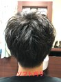 ハードになりすぎないように、バックの襟足部分をソフトに刈り全体的に柔らかい印象にしてます。