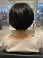 前下がりのショートボブです♪前から見た時にメリハリ効くように軽くカットしてます♪ハンドブローで収まります♪
