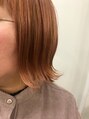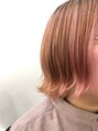 ピンクのカラーが定着して、何度か暖色計のカラーを繰り返し、色落ちが楽しめるカラーです。外ハネで毛先の動きも強調されてナチュラルだけどおしゃれなヘアスタイルです♪