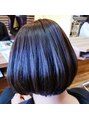 パツンとボブスタイルにインナーカラーをプラス!カラーリングはディープブルーでツヤ感もGOOD!!褪色過程も楽しめます。