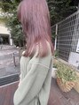 ブリーチ必須のピンクベージュ!ベージュを混ぜることで柔らかな色になります♪ケアブリーチでダメージを抑えながらカラーしています。