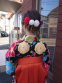 オレンジの袴がお似合いでインナーカラーも映えてとても素敵でした。
