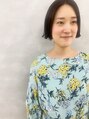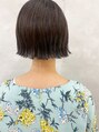 リップラインの切りっぱなしボブラインをキレイにだした重めのやや前下がりボブです。