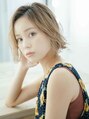 プツンッとした切りっぱなしのラインに表面に少しレイヤーを入れることで動きのあるボブに。根本はあえて黒く残すことで全体に馴染みやすく毛先にかけて明るさをだし重すぎないヘアースタイルに。前髪があっても可愛いこと間違いなし