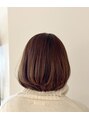 全体は前下がりのシルエットにバックは重くなり過ぎないように段差を入れています。後頭部の丸みもキレイに映えます。ベージュで黄味をナチュラルに除去してあるのでお顔映りも良いです。