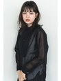 ぷつっとしたラインの切りっぱなしミディアムスタイル。前髪もぷつっとラインを出しつつ、隙間ができるように調整。ストレートな質感でも、軽く毛先を巻いても可愛いです。カラーはベージュブラウン。