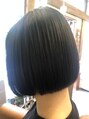 ミニボブ 暗髪カラー リップラインボブ ワイドバング