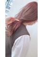 ハイトーンのブリーチベースにオンカラーしています♪ほんのりバイオレットを混ぜたモーヴピンクカラー☆バイオレットがくすみ感を引き出してくれるので、オシャレな雰囲気に。ちらっと見えるイヤリングカラーは少しビビッドなピンクにしてコントラストを。