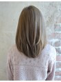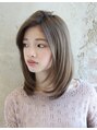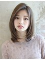 全体は鎖骨の長さで顔周りに少しレイヤーを入れて動きを出しやすくしたミディアムスタイルです!小顔に見せる顔周りの髪の毛も一人一人に合わせて作ります。肩で自然とハネさせても可愛いです!!カラーは柔らかさの出るベージュブラウン系です!