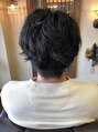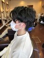 サイドは2ブロック、後ろは自然にすっきりカットし全体は長めにカットしたヘアスタイルです。自然にスパイラルパーマをあててオシャレな雰囲気を出しました。