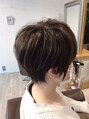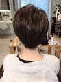 カラーは極力赤みを抑え、ダークトーンでも 光に当たると透明感、柔らかい印象に。カットはクールショートで、かっこいいできる女性に。