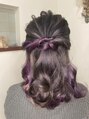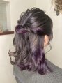 もともと全頭ブリーチをしていました。インナー部分はヘアマニキュアのバイオレット全体はアルカリカラーのアッシュグレーです。