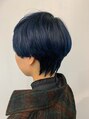 ベリーショートに襟足を残したマッシュショート。ダークトーンのブルーネイビー◎