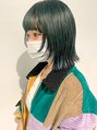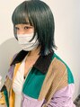 ワイドバングのライン感と後ろのライン感を重た目に残しつつ、顔周りだけにレイヤーをオン。重軽な質感の差で少しモードに◎カラーは明るすぎないターコイズグリーンに!!