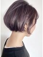 シンプルなショートボブスタイルはスタイリングが簡単で形も崩れにくいので髪に時間がかけられない方にもオススメ◎グレイッシュなパープルカラーは元々のブリーチ毛を活かしてカラーリング。紫系カラーは色落ちが黄色くなりにくく透明感が出ます◎