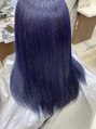 ブリーチ2回→ブルー系オンカラーでのネイビーブルー♪以前に黒染めされてる状態からです。