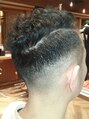 men'sのパーマスタイル!サイドからバックにかけて0.5ミリから4ミリにグラデーションで刈り上げ!分け目に少しラインを入れてバーバースタイルのスキンシェードに!