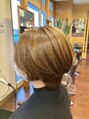 王道のハンサムショートで広がりにくいよう、お客様の毛量に合わせて、重さを残したカットです。重さを残している分、カラーを明るくしてふんわりした印象にしています。