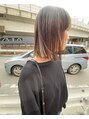 シルエットにこだわったスクエアボブ。カットラインにデザイン性があるので、オイルをつけるだけでキマる。カラーは、持ち良いように、毛先にハイライトを入れた、ナチュラルなグラデーションカラー。