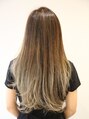 胸下ラインの切りっぱなしロングデザインです。カラーはグラデーションにしハイライト、ローライトを入れアバンギャルドな雰囲気で…。髪質改善プログラムで艶感をプラス。人気のデザインカラーでワンランク上のスタイルを目指しています。