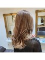 エアタッチしてピンクベージュカラー♪前髪なしのレイヤースタイルはエアタッチやバレイヤージュなどのデザインカラーが相性◎