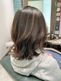 自然にハイライトを入れて白髪をカバー!巻いたときにもカールのニュアンスになるようにハイライトを入れました。