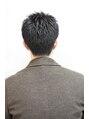 トップはモヒカンにならないようにラウンド状に立たないギリギリでカット、周りはハサミで刈上げてスッキリして丸みをもたせたスタイルにしました。