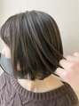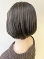 黒染め履歴有りの髪にトップのみブリーチでハイライトを入れてから、赤味を抑える為に全体をアッシュベージュにカラーリング☆