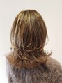 髪の表面だけに細いハイライトをいれてます☆カットでしっかり段をいれてるのでコテやアイロンで軽く巻いてスタイリングすると、ハイライトをいれてるので動きと立体感がでます☆