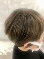 耳にかけれる長さのタイトなショートスタイル。透明感あるグレージュカラーで艶々です。前髪は重めの流れる感じで仕上げてます。