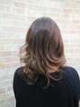 グレイカラーとファッションカラーをMIXし、仕上げにコテで巻いて、立体感を出しました。