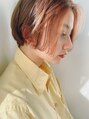 前髪はリップラインの前下がりショートボブ。ボブから飽きたかたに後ろはグラデーションですっきりと。ハイライトを顔まわりにしっかり入れてオンカラーはオレンジピンクをON。暖色カラーで肌の色もキレイに見えます☆