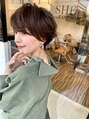 人気のマッシュショートスタイル。前髪は長めでトップからあつめに流して、サイドも後ろに向かって流した、大人可愛いマッシュです。カジュアルスタイルも女性らしく上品に仕上げました(*^^*)