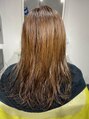 他店でされたパーマを落としたいということで、中間~毛先を縮毛矯正をしました。1週間後に、オレンジみを抑えたグレージュ系のカラーをいれて抜け感と艶感を出しました。