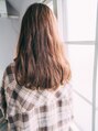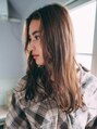 センターパートのロングスタイルは、ガーリーな印象が強くなりがちなので、全体にウェーブを出すことで、カジュアルガーリーなスタイルにしています。分け目をかえてかきあげバングにすることで、ガラッと印象をかえれる2wayスタイルです。